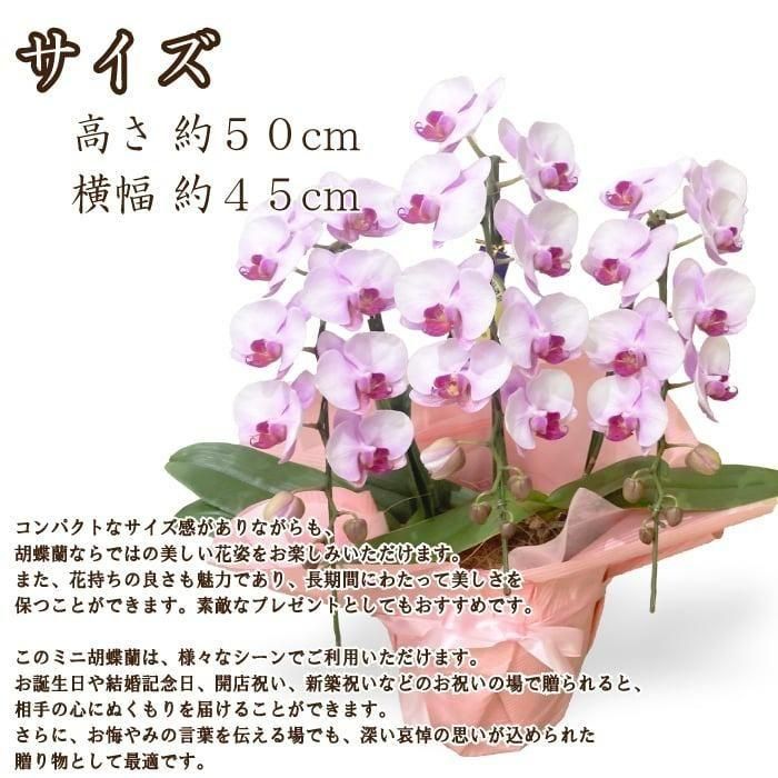 送り先の置き場所が白い場合などは、コントラストで映えるピンクのミニ胡蝶蘭はいかがでしょうか。女性への贈り物にも最適です。